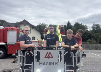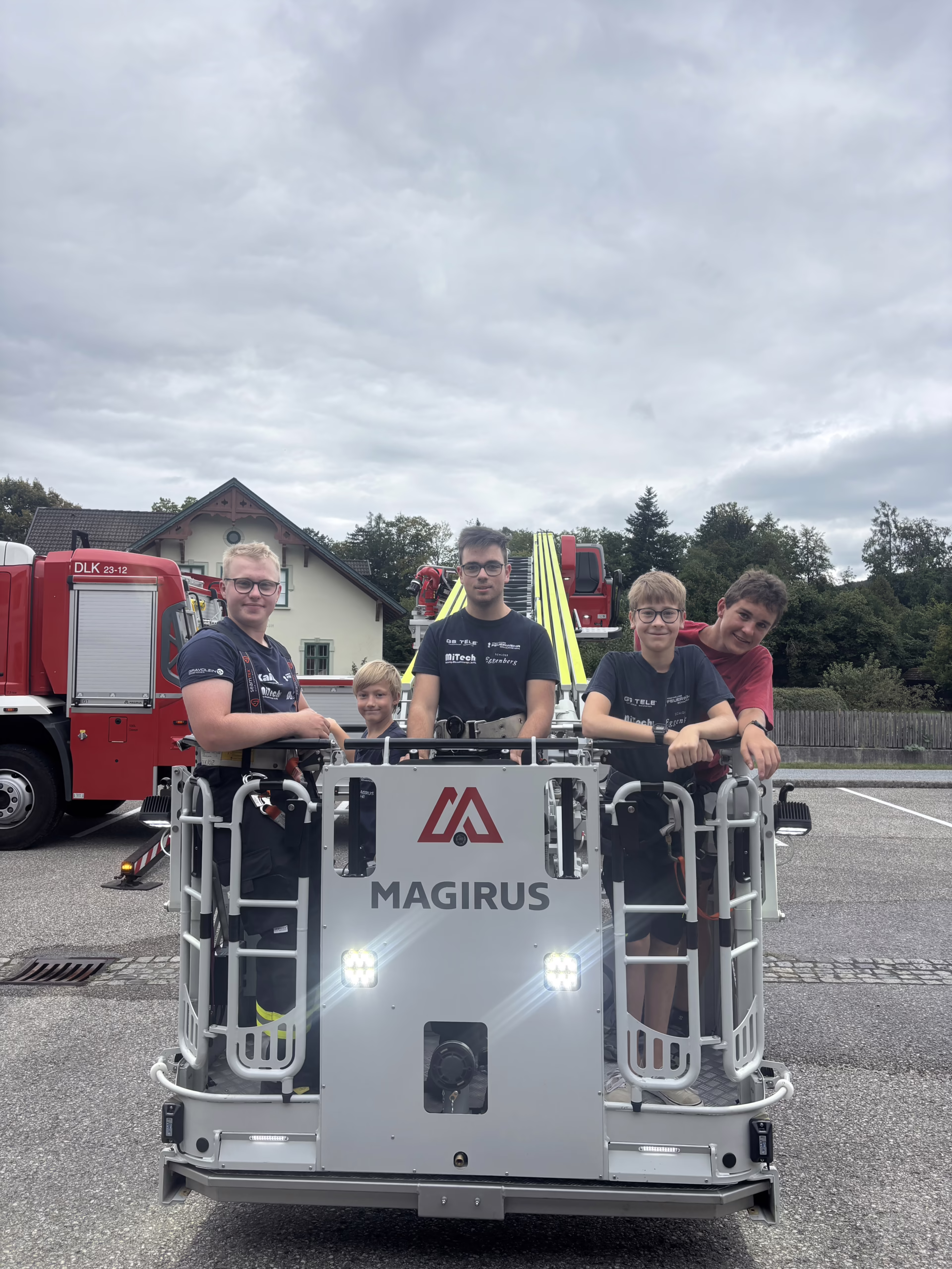 Ein besonderes Highlight war die Fahrt mit der Drehleiter, bei der die Jugendlichen nicht nur den Umgang mit diesem imposanten Gerät kennenlernen konnten, sondern auch einen beeindruckenden Ausblick über Scharnstein genossen.