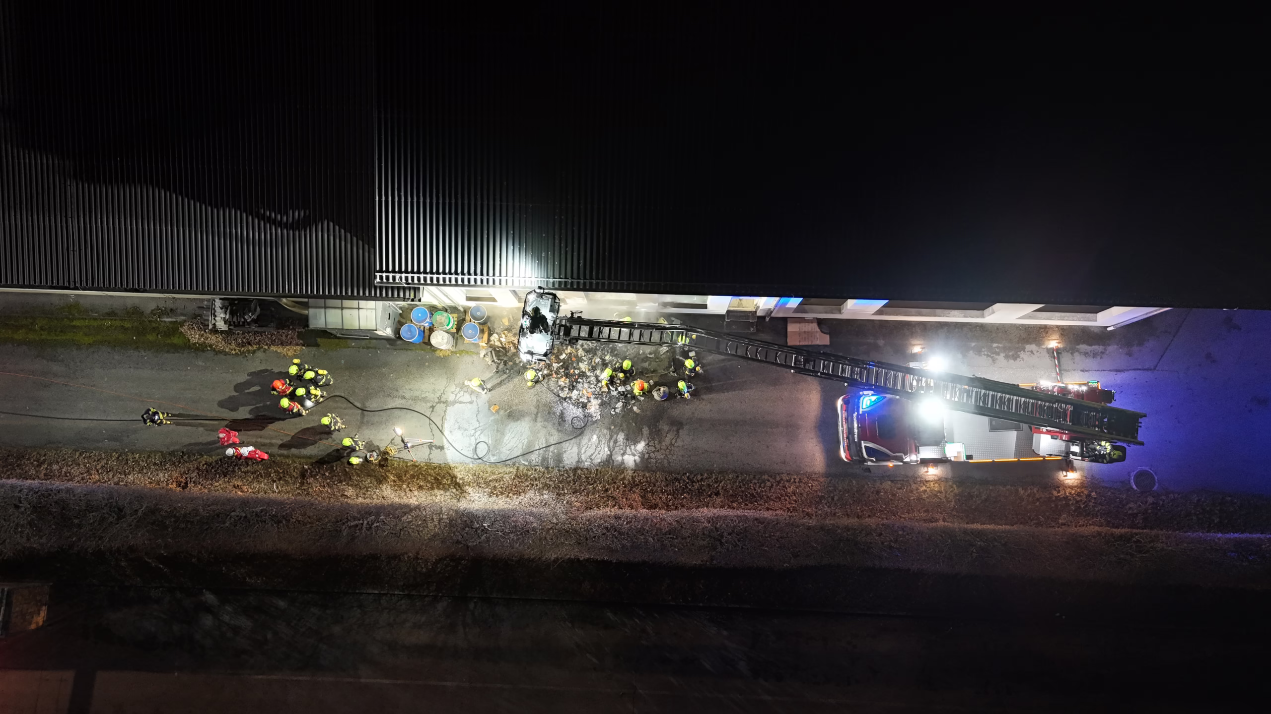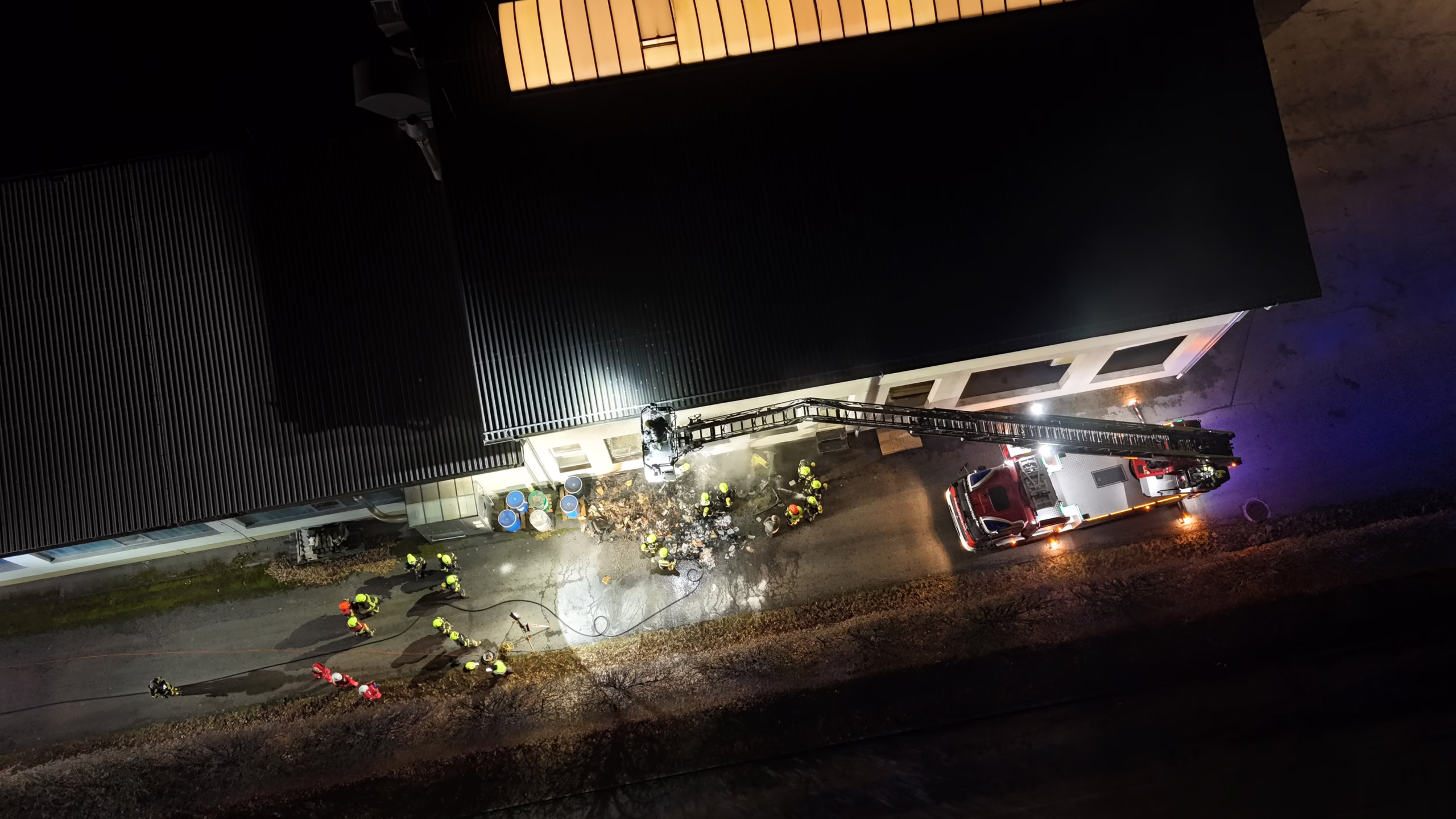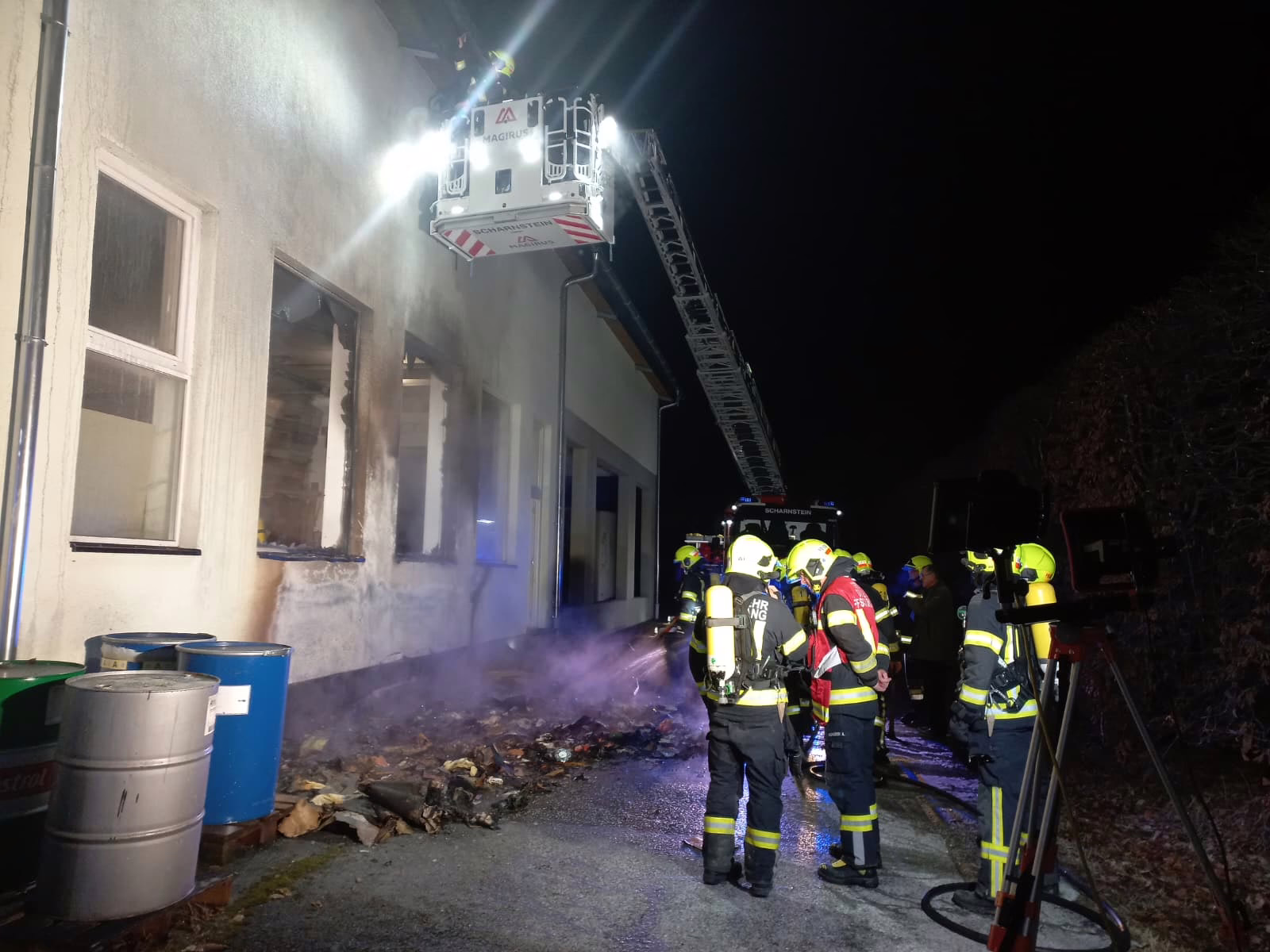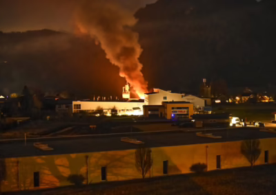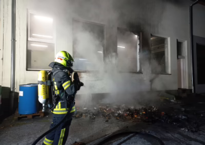 Am Freitag, dem 5. Dezember, wurde die Feuerwehr Scharnstein um 18:32 Uhr von der Landeswarnzentrale zu einem Brandmeldealarm in einem Gewerbegebiet alarmiert. Bereits auf der Anfahrt war ein deutlicher Feuerschein sowie aufsteigender, dichter Rauch sichtbar.