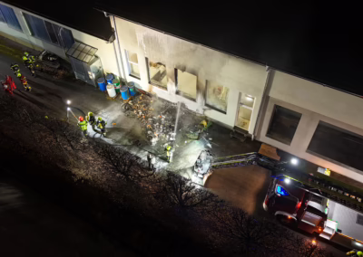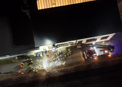 Durch das schnelle und koordinierte Eingreifen der Einsatzkräfte konnte der Brand zügig unter Kontrolle gebracht und ein Übergreifen auf weitere Gebäudeteile verhindert werden. Über die Drehleiter wurde zusätzlich der angrenzende Dachbereich auf mögliche Glutnester kontrolliert.